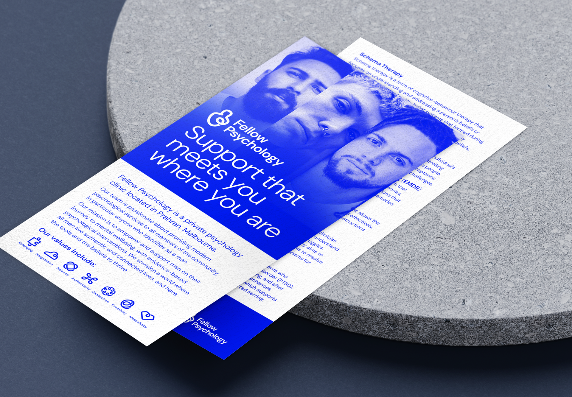 Fellow Psychology, a mental health clinic in Prahran, Victoria, specialises in evidence-based therapies that enhance positive mental health outcomes and improved wellbeing for men of all sexual orientations and gender identities.
