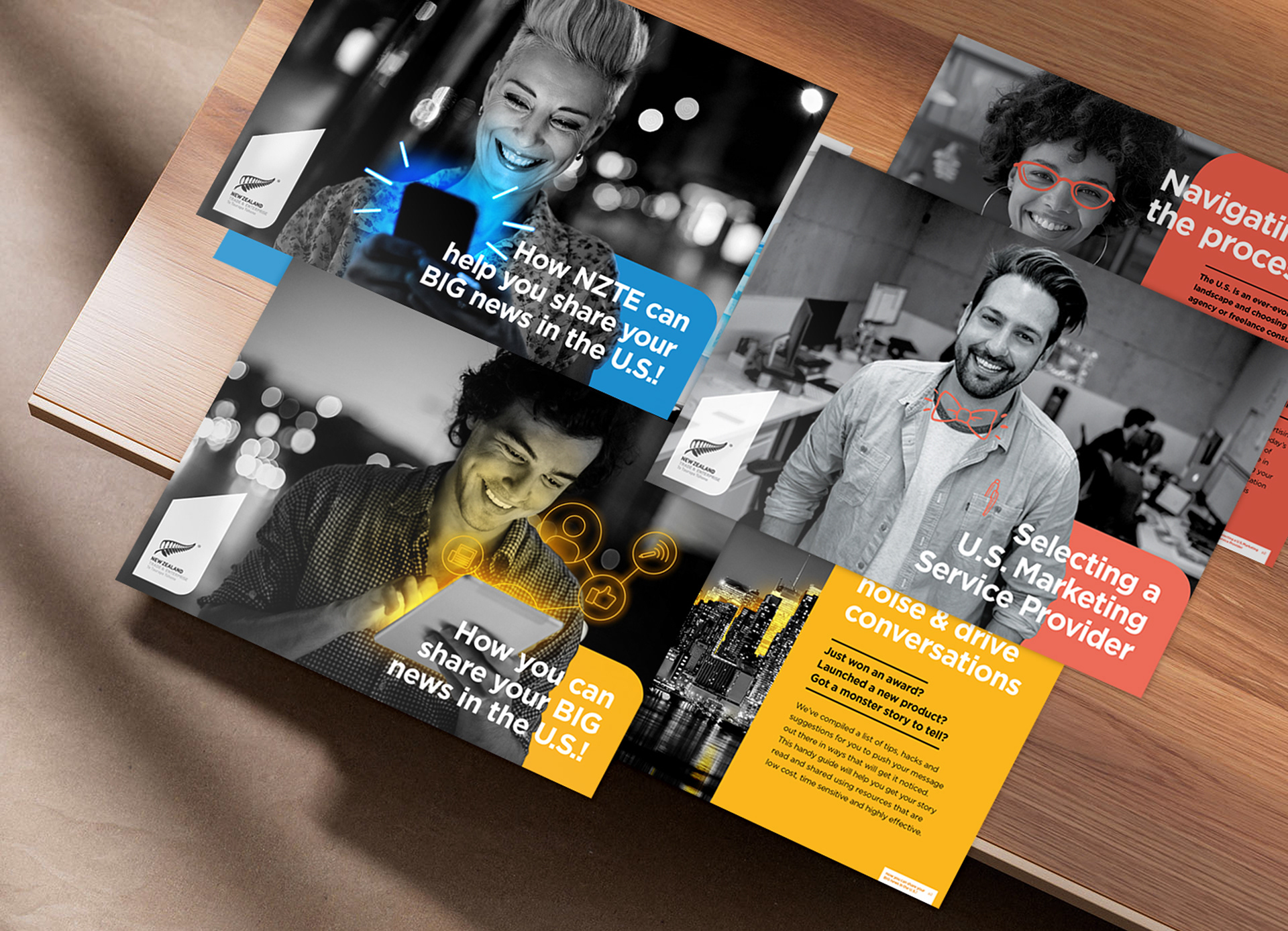 NZTE approached me to create a family of helpful guides on how New Zealand businesses should market themselves in the United States. Tackling the U.S. audience is quite daunting, but these easy to read guides have clever tips to get their message out in a competitive and different marketplace to their own.